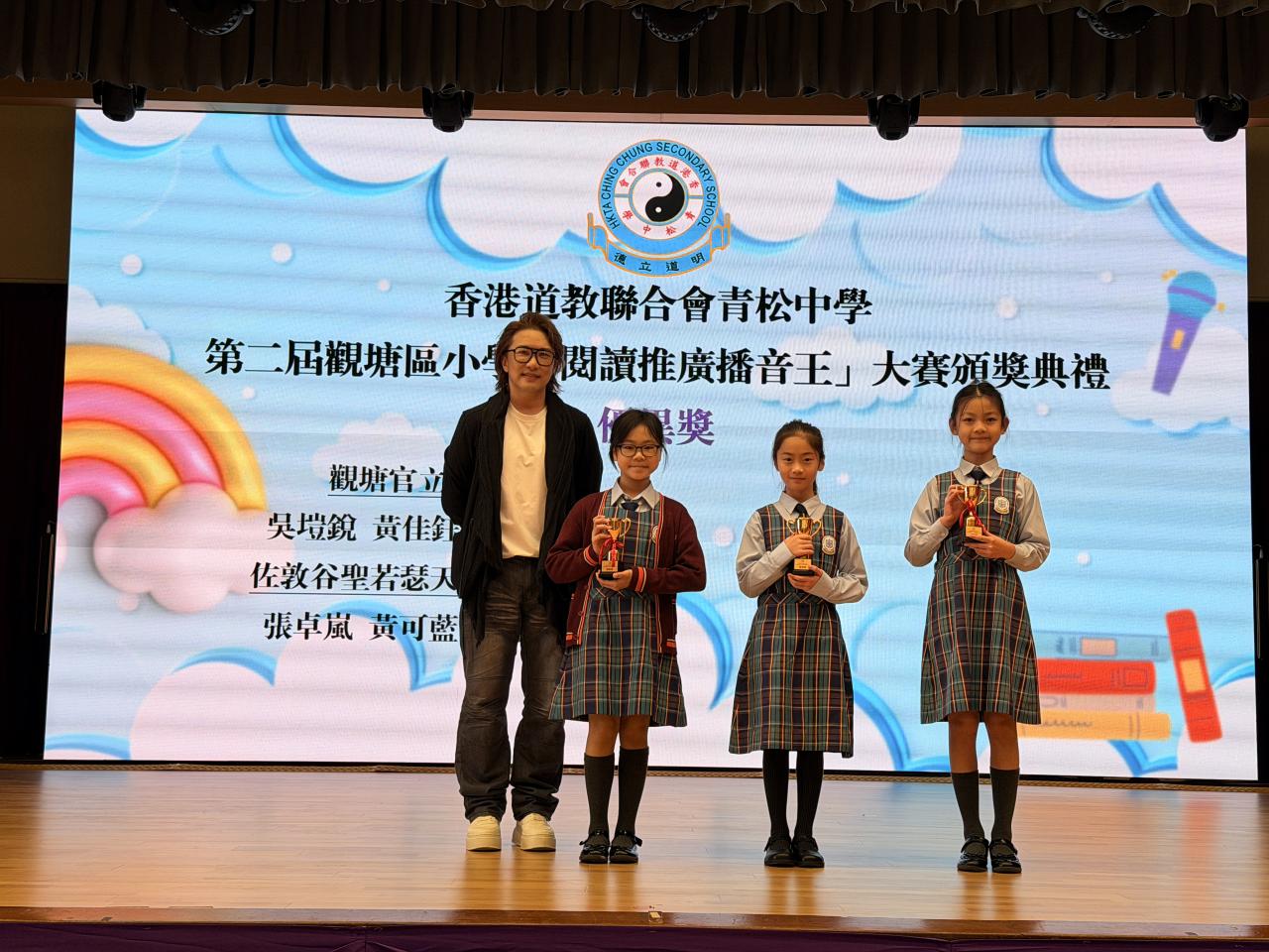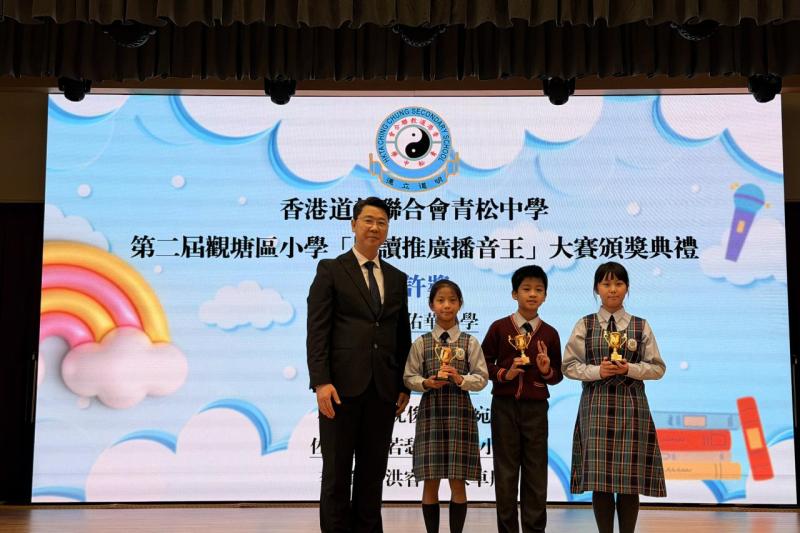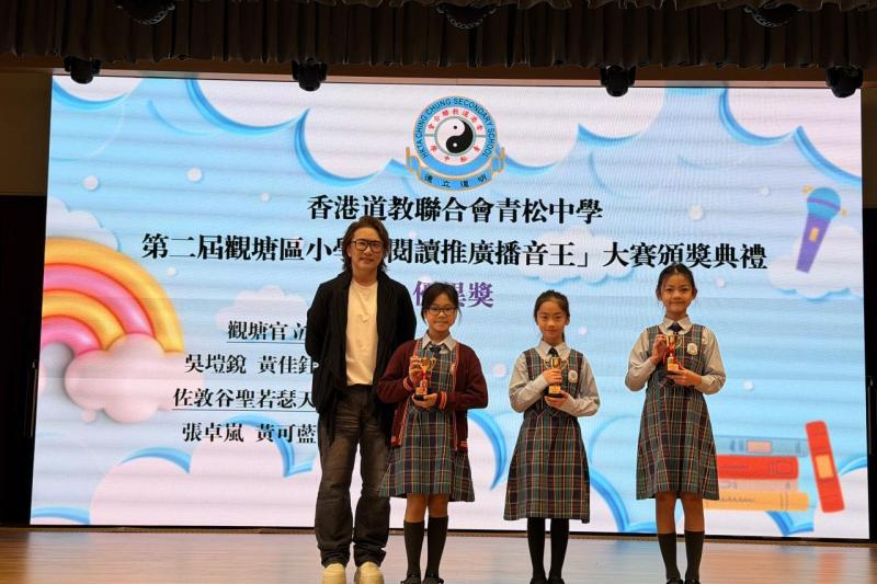 2025-12-14 第二屆觀塘區小學「閱讀推廣播音王」大賽頒獎禮本校9位學生參加香港道教聯合會青松中學 第二屆觀塘區小學「閱讀推廣播音王」大賽,滿載而歸。在12間學校69 份作品中,本校囊括:英語組金獎、英語組銅獎、粵語組金獎、現場投票最受歡迎播音王獎、網上最具人氣播音王獎、優異獎及嘉許獎。欣賞同學們的努力。 最新消息