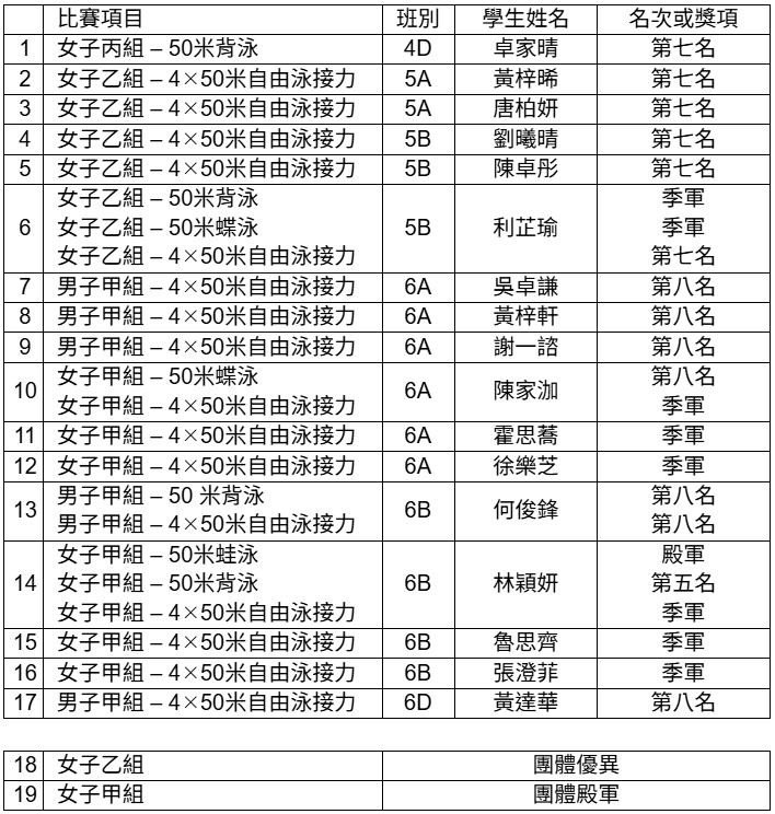 香港學界體育聯會 九龍東區小學校際游泳比賽 (2025-2026)